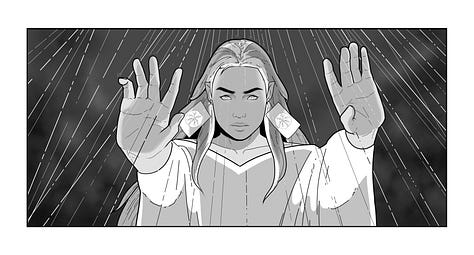 Here are some panels, pages, and concept art! I’ll introduce the main characters in a future post.